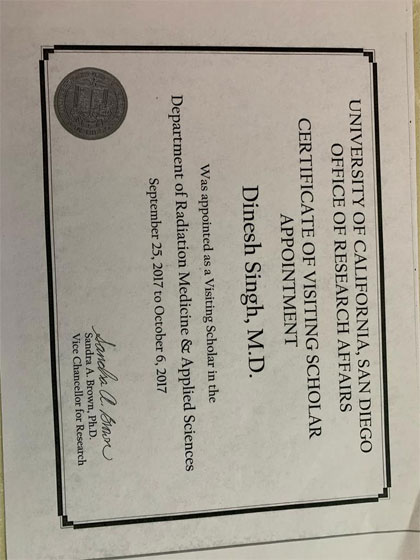 With Dr Nisar Syed in Orange County Cyberknife Centre California USA