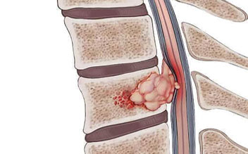 Spinal cancer is caused by abnormal cell growth in the tissues that make up the spine (including the spinal canal and vertebrae), resulting in the formation